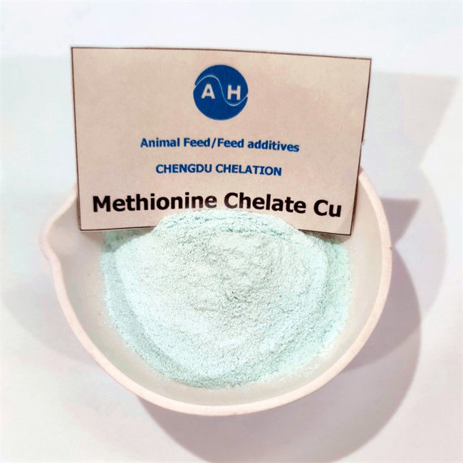 KopermetionienAminozuurchelaatis lichtblauw poeder, goede vloeibaarheid, goede smaakbaarheid van de voederformule, hoge absorptie, gemakkelijk te vervoeren, kan de activiteit van enzymen bij dieren versterken,het gebruik van eiwitten verbeteren, vetten en vitaminen, waardoor de groeiprestaties van de dieren worden verbeterd.